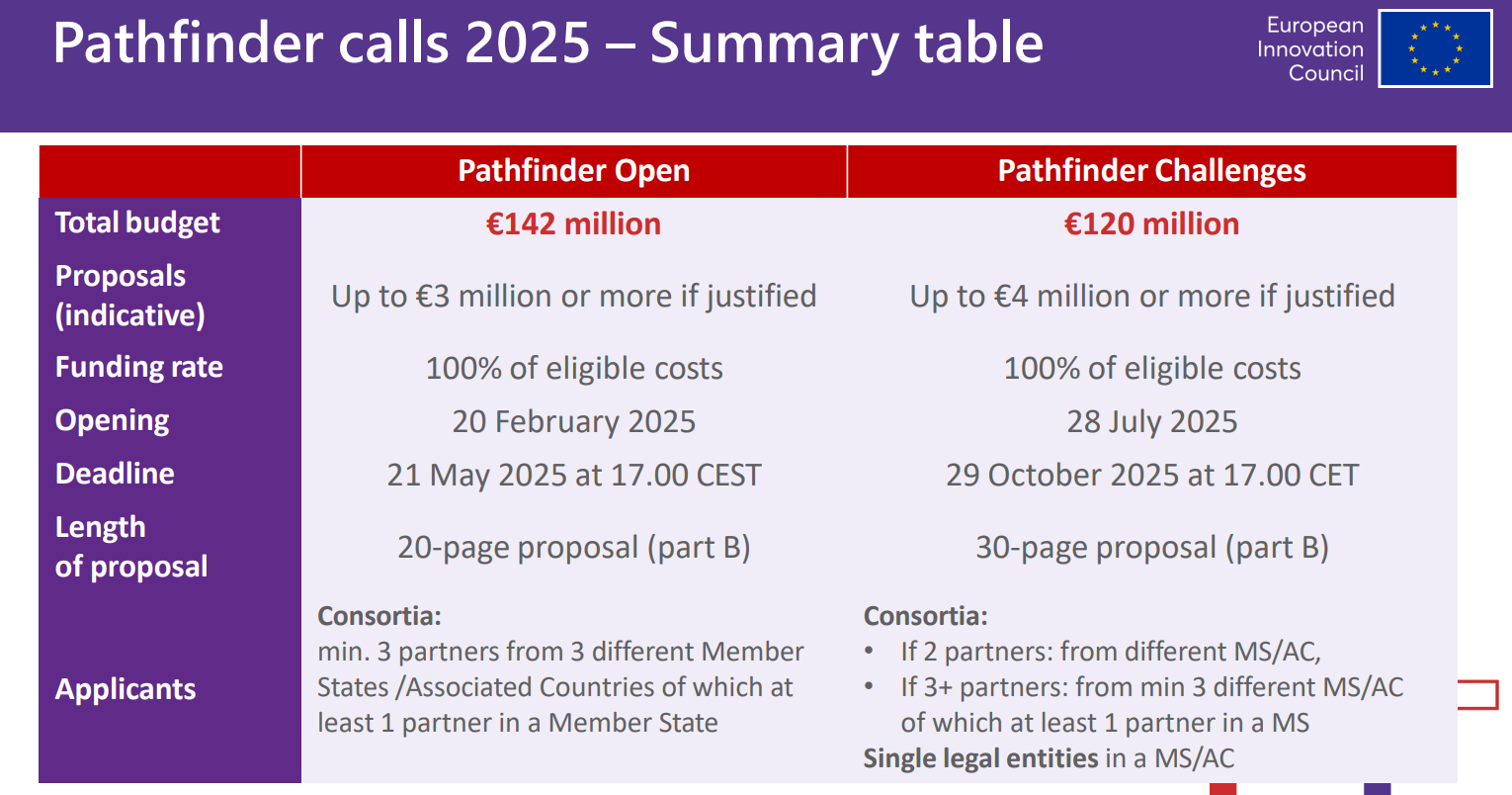 - EIC Pathfinder: for advanced research on breakthrough or game-changing technologies
